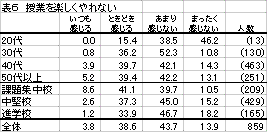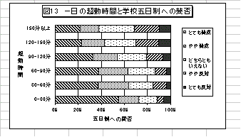 相次ぐ教育改革と並行して、2002年4月から学校五日制が完全実施された。今回のアンケートは2003年4〜5月に実施したので、ちょうど学校五日制が完全実施されて1年後の実態調査ということになる。「生きがいと健康」調査が行われた1994年の時点では学校六日制の時期(月2回の学校五日制は1995年4月に始まった)であり、それと今回の調査を比較して検討したい。