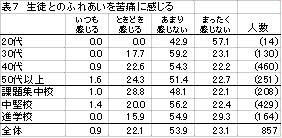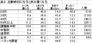 年代別、ランク別の表を見ると(表2)、年齢が上になるほど「いつも感じる」が増え、課題集中校でも1割を超えている。