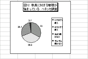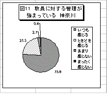 ベネッセ調査では「全般的に、教師に対する管理が強くなっている」との意見に対して、「とてもそう思う」が33.0%、「わりとそう思う」が36.2%とあわせても神奈川と比べて69.2%とやや数値が低くなっている(図12)。神奈川では管理規則の改定や綱紀粛正の通知がここ数年矢継ぎ早に出されてきていて、その急激な変化に戸惑う現場教員の意識が、神奈川とベネッセ調査の差異を示しているのではないかとも考えられる。
