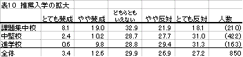 さらに今回の調査でも、中堅校の教員の意識の問題が浮かび上がってきた。中堅校は学習面や進路保障面で、生徒・保護者の要求も多様化し、従来とは変わってきている点が多いのかもしれない。今まではあまり重点的に考えられてこなかった視点であるが、高校教育のあり方を考える上で、重要な課題と受け止めるべきだろう。