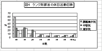 新たな教育改革の流れの中で、土曜・日曜の休日に学校説明会、オープンスクールなどの学校行事を実施する高校が増えている。またPTAの活動が、保護者の平日の参加が難しくなって休日に行われる傾向にあり、部活も平日の授業時間が増加するなどして、休日に行う傾向にあるのではないか。U.教員志望の動機と自己評価