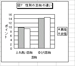 教員の志望動機7項目について因子分析を行った結果、2つのグループに分類することができた。1つは、教員の良い意味での影響・部活動の指導・生徒とのふれあいの3項目から構成されるのだが、これを「ふれあい志向」と名づけた。もう1つは、専門分野の研究・時間的ゆとり・安定した収入や処遇・利潤を追求しないの4項目から構成され、「ゆとり志向」と名づけた。そして、「とてもそう思った」を5点、「ぜんぜん思わなかった」を1点として、個々の回答者について、各志向を構成する質問項目の点数を合計し得点化を行った。
